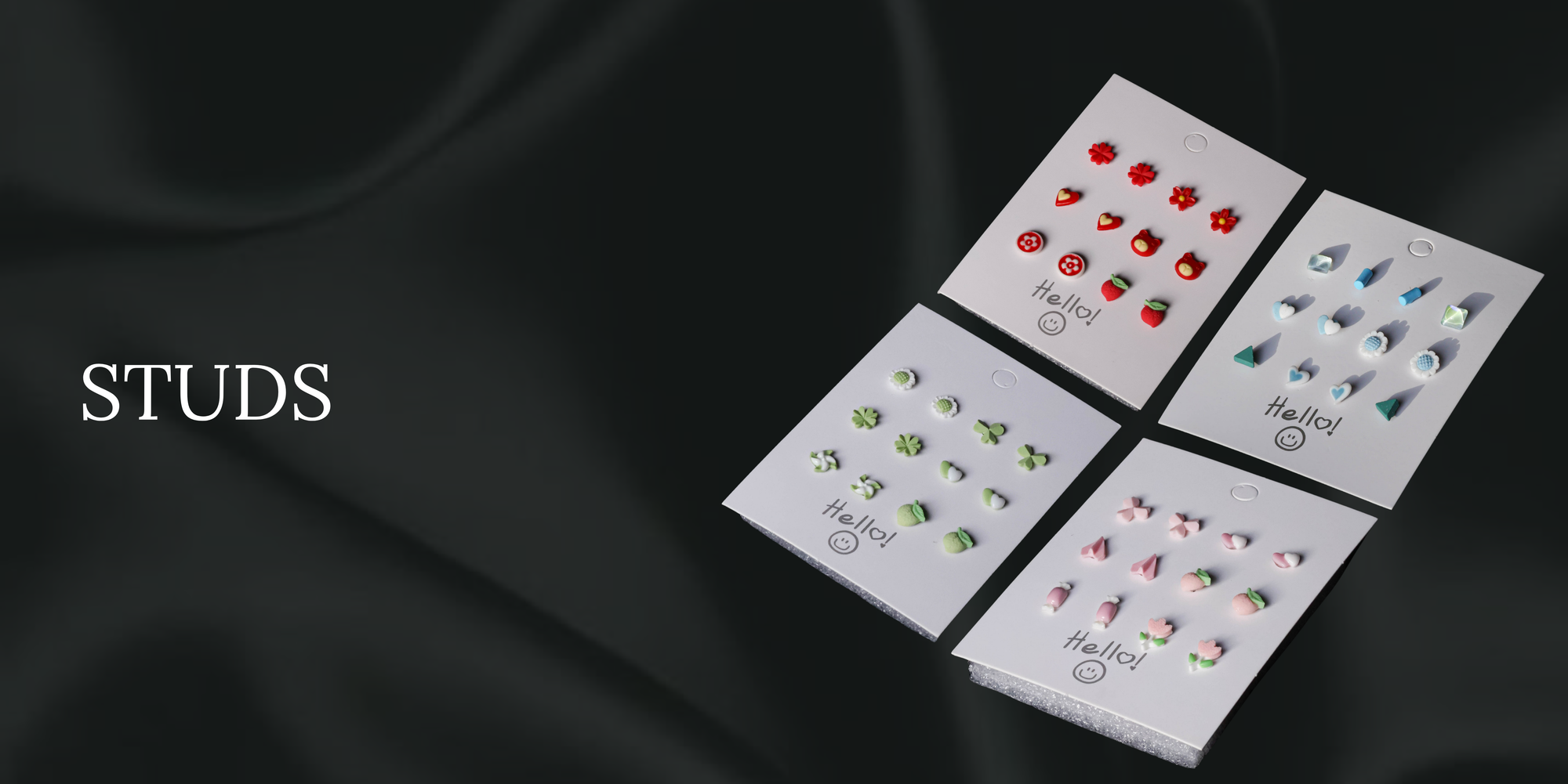 Red Mixed Mini Stud Earrings – Cute Nature-Inspired Resin Ear Studs (Set of 6)